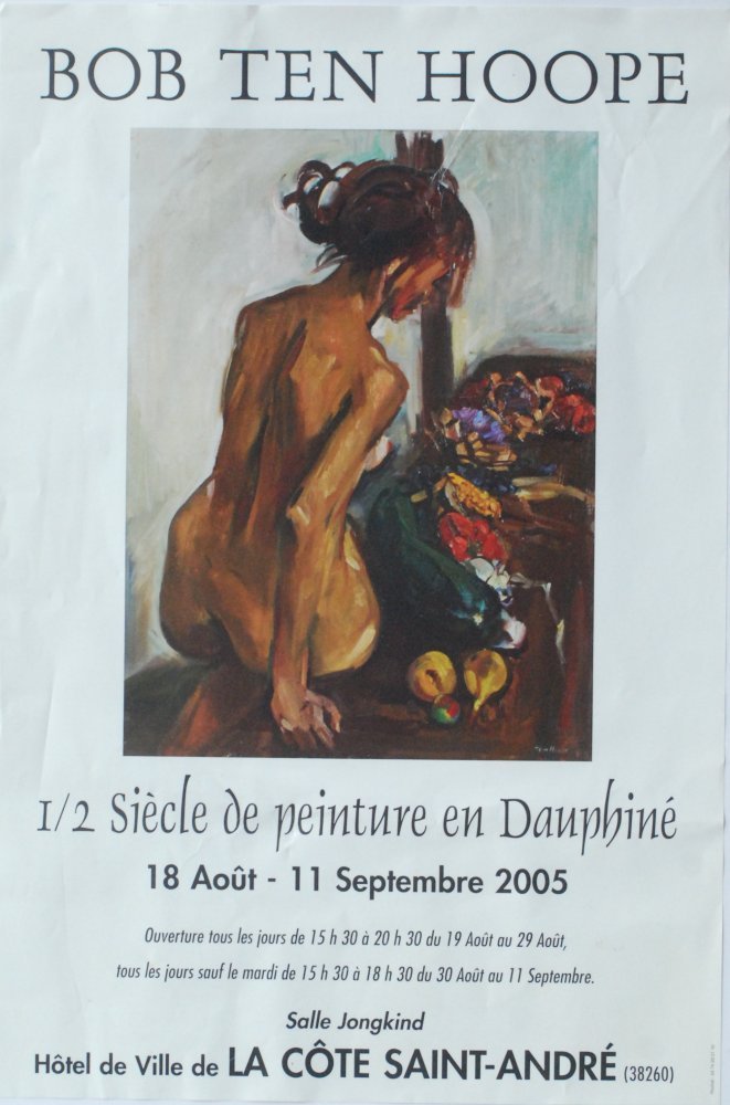 Bob is daar in zekere zin nog steeds, want na zijn overlijden is de straat waar hij woonde (rue Villeneuve) hernoemd in rue Bob ten Hoope. Mede als gevolg van zijn vele reizen, o.a. naar Italië, Zwitserland, Spanje en New York (in april 1953 met de Willem Ruys), werden er met de jaren overal tentoonstellingen gehouden. Bob ten Hoope heeft op heel veel plaatsen geëxposeerd: in ons land regelmatig in het oude Hotel Hamdorff en in het Singer Museum in Laren, in kasteel Groeneveld in Baarn [voetnoot 2], in museum Jan van der Togt in Amstelveen en verder in Apeldoorn. En in New York, Venetië, Lyon, Grenoble en Marseille. En natuurlijk vaak in en nabij Pont-en-Royans. Bob had vaste modellen, die graag poseerden. Nimmer werd hun vertrouwen beschaamd, want het resultaat was altijd een heel mooi en kleurrijk naaktportret.