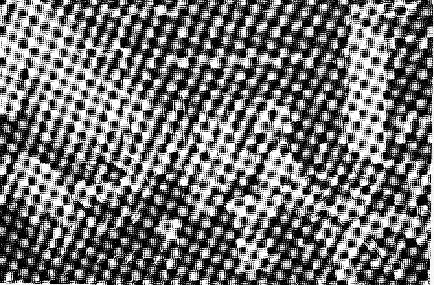 Wasserij "de Waschkoning" werd in 18Bl opgericht door Lambertus de Beer. Hij was gehuwd met Johanna Bus. Uit dit huwelijk werden vijf kinderen geboren. Drie zoons Henk, Bertus en Gerrit werkten eveneens bij "de Waschkoning" Links op de foto Gerrit, in witte jas zijn broer Henk. De wasserij was gevestigd aan de Lammert Majoorlaan. Een dochter trad in het klooster en werd later als moeder Marie Matthea hoofd van het Sint Elisabeth sanatorium in de Lage Vuursche.