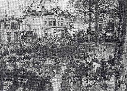 Lied door Bussumse schoolkinderen gezongen met begeleiding van Harmonie Crescendo op 1 mei 1917