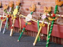 Op bijgaande foto uit 1939 zijn palmpaas-stokken te zien waarmee op Palmzondag meestal in optocht werd rondgelopen. Voor de hoofdingang van Huizerweg 54, de toenmalige Huishoudschool, staan leerlingen van de tweejarige vormingsklas. Opvallend is dat de leerlingen er veel ouder uit zien dan ze toen waren.