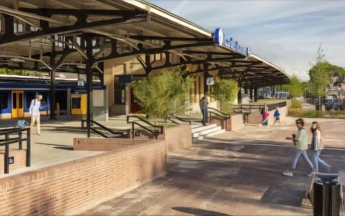 Het kan bijna niet anders dan dat de Historische Kring Bussum een sterke voorkeur heeft: Een van de genomineerde ontwerpen bevindt zich namelijk vlak achter ons documentatiecentrum aan het Stationsplein. Het gaat om de heringerichte openbare ruimte aan de Spiegelzijde van het station. Daar is aan de Slochterenlaan een toegang gekomen naar het middenperron.