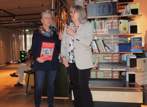 Op Zaterdag 8 maart, Internationale Vrouwendag, heeft het jongste nummer van onze vereniging het licht gezien. Het eerste exemplaar van het blad, gewijd aan 'strijdbare vrouwen' werd door Ria Platvoet uitgereikt aan wethouder Barbara Boudewijnse. Dat gebeurde in De Plataan in Naarden waar die zaterdag diverse activiteiten waren met als motto 'Vrouw van de Toekomst'. Officieel moment was de opening door de wethouder en de overhandiging van het BHT-nummer. Ria Platvoet staat zelf op de foto van de etalage van het voormalige vrouwenhuis in Bussum dat het omslag siert. 40 jaar geleden gemaakt voordat het Vrouwenhuis aan de Brinklaan werd gesloopt. (foto's Jaap van Hassel)