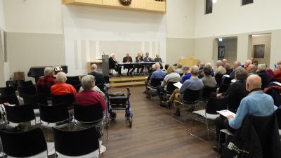 Ook niet onbelangrijk was een voorstel van het bestuur tot een ingrijpende statutenwijziging. Wat dit betreft is een extra ledenvergadering noodzakelijk. De benodigde aanwezigheid van twee-derde van de leden was er namelijk niet. Daarom zal opnieuw worden gestemd op maandag 31 maart 10.30 uur in het documentatiecentrum van de HKB. Dan kan er een rechtsgeldig besluit kan worden genomen ongeacht het aantal aanwezige leden. De statutenwijziging betreft onder meer het buiten werking stellen van het Huishoudelijk reglement. Dat is naar het oordeel van het bestuur verouderd en soms zelfs in tegenspraak met de Statuten. Het bestuur acht aanpassing nodig door onder meer de opkomst van de digitale communicatie. In de nieuwe statuten zijn waar nodig bepalingen uit het Huishoudelijk Reglement overgenomen waardoor dit overbodig is geworden. De Jaarvergadering werd voor de tweede keer gehouden in het gebouw van Apostolisch Genootschap aan de Meulenwiekelaan. (foto's Jaap van Hassel)