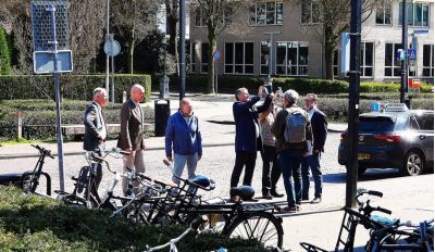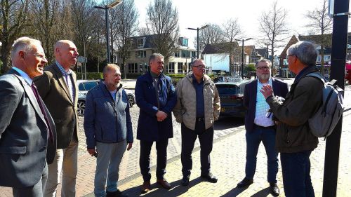 Het gezelschap werd aangevoerd door oud-wethouder Alexander Luijten die nu burgemeester is van Heemskerk. Hij werd op de voet gevolgd door wethouders van die gemeente.Daarbij sloten zich zich ook weer burgemeester Han ter Heegde en wethouder Schimmel aan. De laatste had de succesvolle route in Bussum gefaciliteerd.