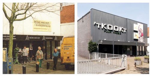 De foto van de Vlieg is rond 1990 gemaakt. Die van 'tKOOKt is van na 2007. De foto tijdens de verbouwing is van december 2021. En de laatste foto is genomen in de zomer van 2022.