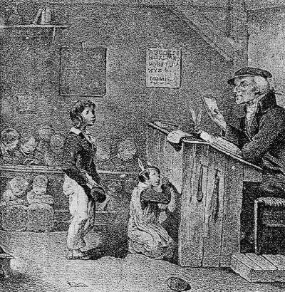 Er was geen leerplicht en voor de leerlingen betaalden de ouders per maand lesgeld. De maanden dat een kind niet naar school ging betaalde men dus ook niet. De armen waren van lesgeld vrijgesteld wat, door hun forse aantal, de meester flink in inkomsten scheelde. Het lesgeld voor rekenen en schrijven was hoger dan dat voor lezen. De ouders konden bepalen wat hun kind moest leren. Daarbij was het heel normaal om de kinderen in de zomer en herfst niet naar school te sturen, als ze nodig waren bij het werk op de boerderij en op het land. De inkomsten van de schoolmeester waren hierdoor wisselend en onzeker. De meester hield school-aan-huis. De grootste kamer van zijn woning was als leslokaal bestemd, waarmee er voor eigen gebruik niet veel ruimte over bleef. (Afb. 19)