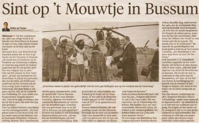 Het Sinterklaasfeest werd eeuwenlang alleen in huiselijke kring gevierd. Pas in de 19-eeuw vertoonde de bisschop zich in het openbaar. Als eerste keer wordt het jaar 1888 genoemd. Dat was op 6 december in het Limburgse Venray. In Amsterdam was de eerste intocht in 1934. De boot van de Sint meerde toen af ter hoogte van de Sint Nicolaaskerk. Wanneer de eerste intocht in Bussum was hebben we nog niet kunnen achterhalen. In 1952 werd de verjaardag van de Sint op 5 december op de Nationale televisie gevierd. Omdat de televisie-activiteiten toen net in Bussum waren begonnen arriveerden Sint en zijn pieten in een open rijtuig bij Studio Irene in Bussum, Ze werden toen ontvangen door een groep kinderen samen met Mies Bouwman.Later werden ook de intochten vanaf wisselende plaatsen live uitgezonden.