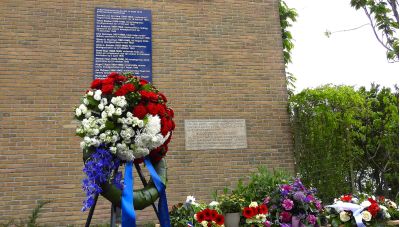 Enkele dagen voor de plechtigheid bleek het gedenkbord in het plantsoen door onverlaten te zijn bekrast. Deze beschadiging kon helaas niet op tijd worden hersteld.