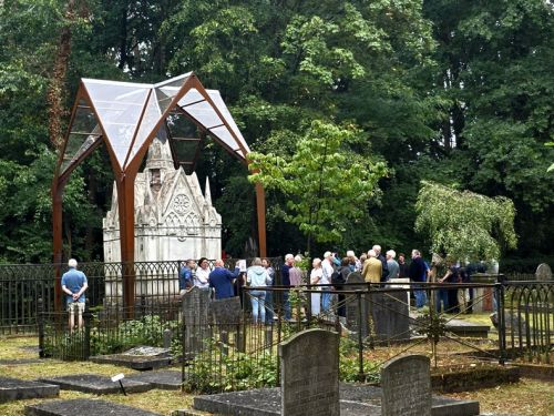Op de Oude Begraafplaats Naarden is de overkapping van het grafmonument Dudok van Heel officieel onthuld op vrijdagmiddag 29 augustus. Het is de volgende fase in de renovatie van de grafkapel. Burgemeester Han Ter Heegde en Hans André de la Porte, voorzitter van de Stichting tot Behoud van de Oude Begraafplaats Naarden, onthulden een informatiebord over het restauratieproces.