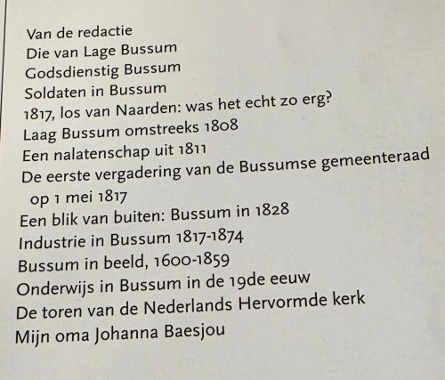 Half april verschijnt er weer een nieuw nummer van het Bussums Historisch Tijdschrift. Het thema is dit keer het Bussum van vóór 1874. Dat jaartal slaat op de opening van de spoorlijn langs Bussum die een enorme groei van boerendorp tot forensengemeente in gang zette. Tal van aspecten worden op uiteenlopende manieren beschreven. Hieronder staan al die onderwerpen op een rij. Een los nummer kost 7,50, leden van de Historische Kring Bussum betalen voor drie nummers €15.