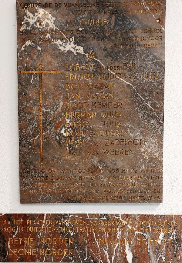 In de hal van het Willem de Zwijger College in Bussum bevindt zich een herdenkingsplaquette met daarop onder anderen de namen van Joop Kemper en Herman Ruys.